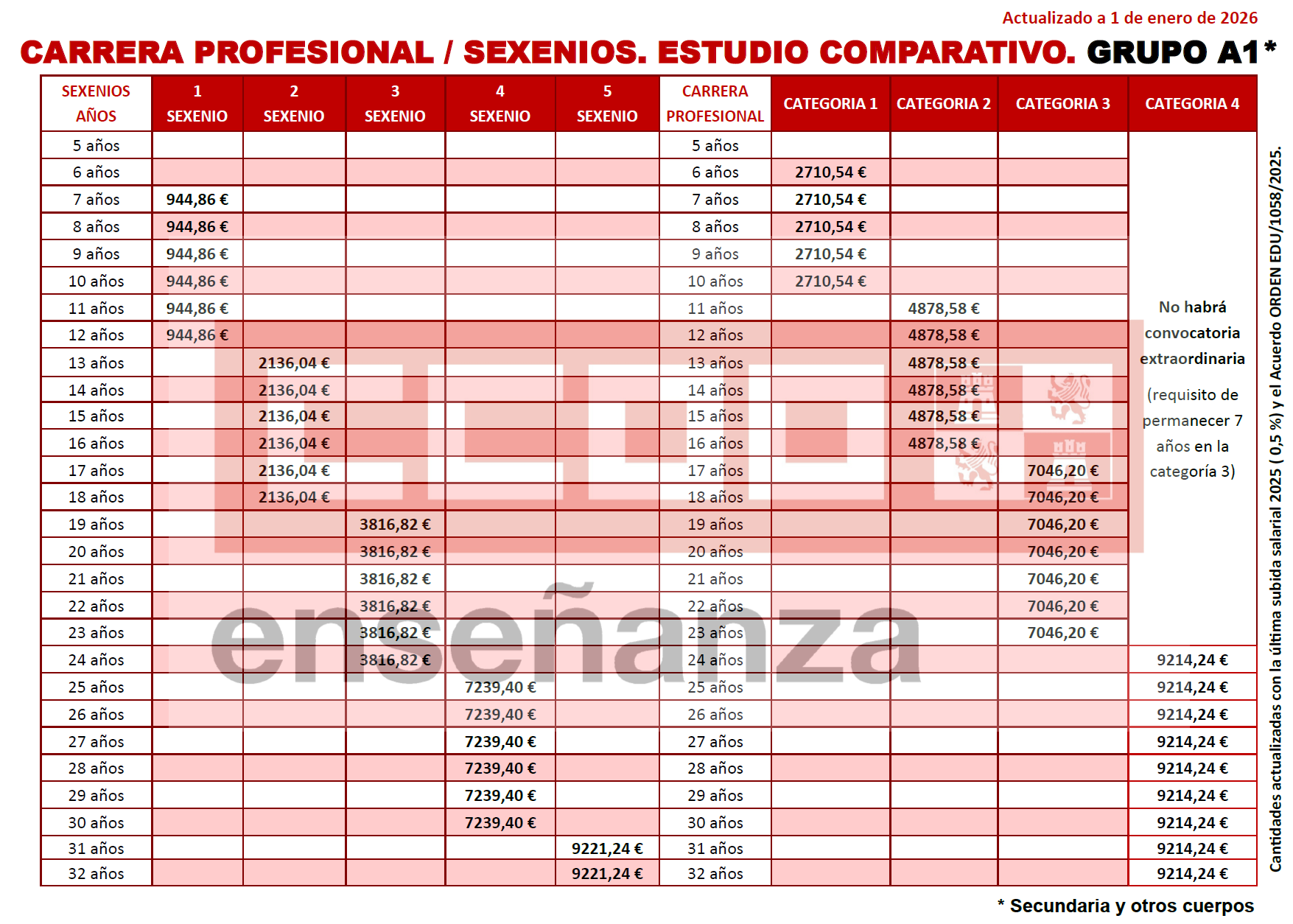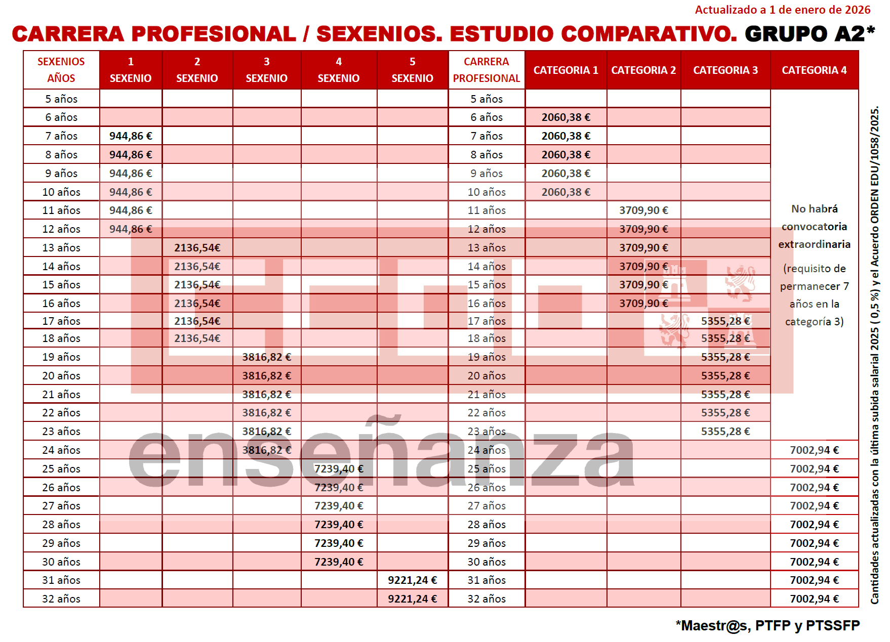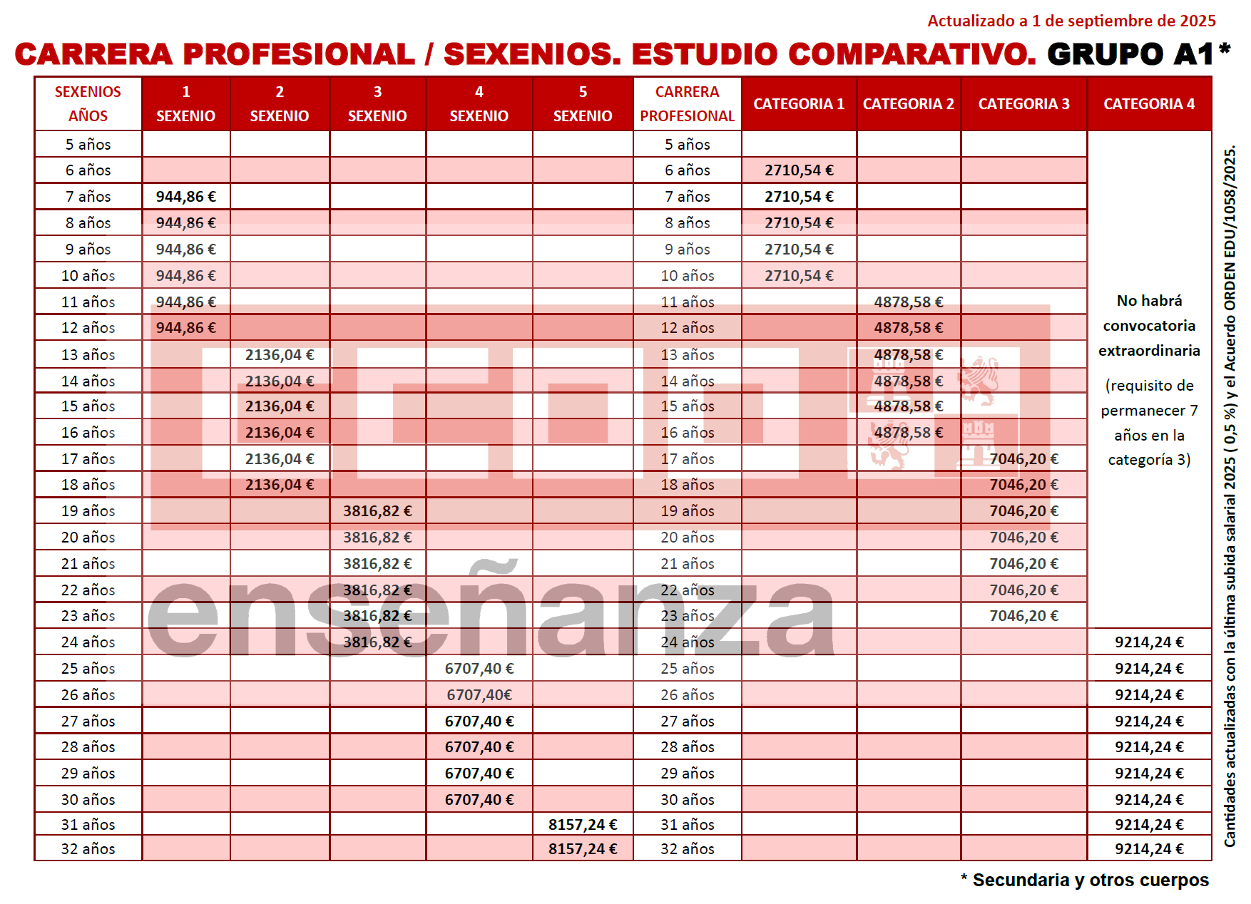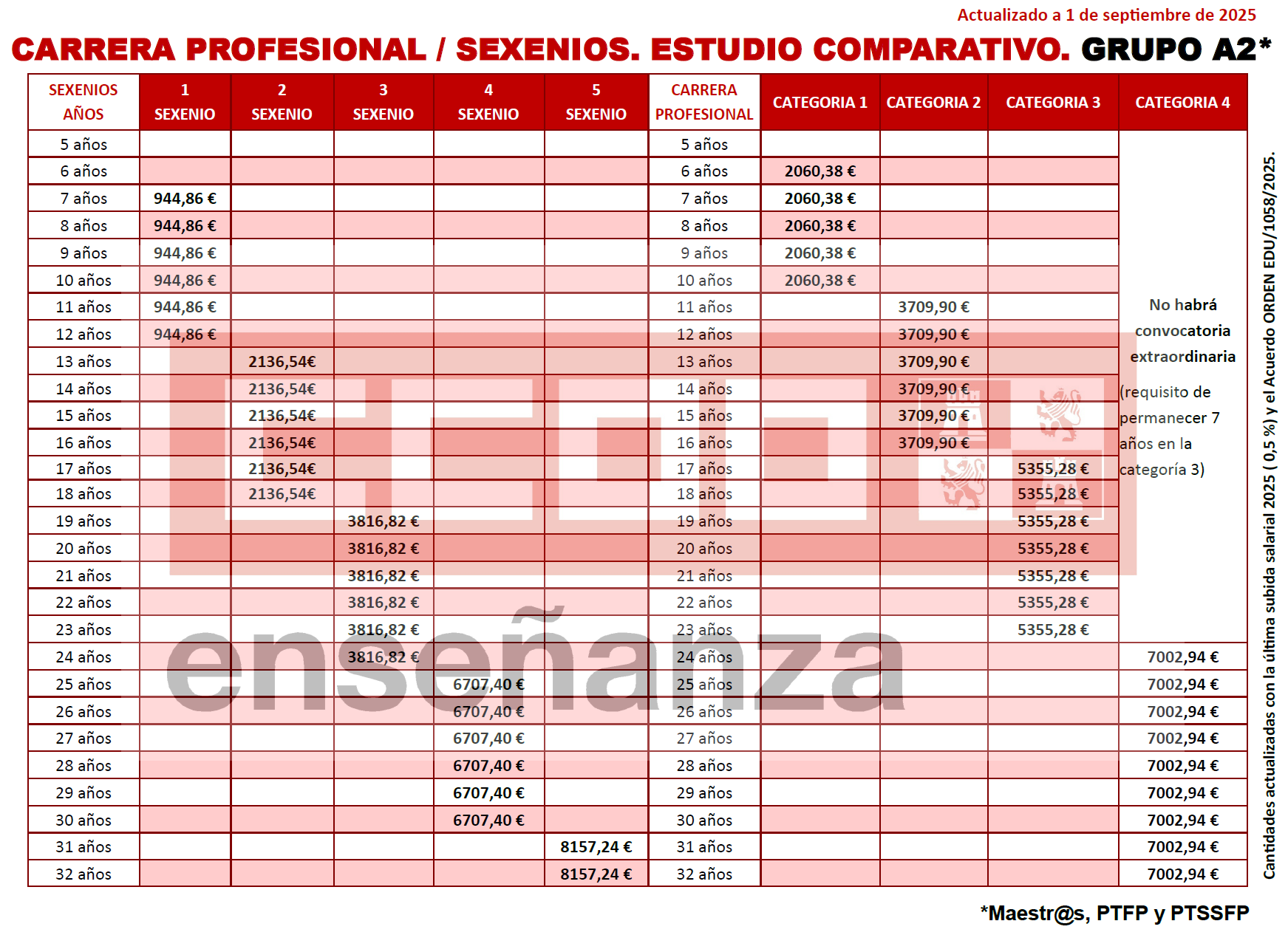 Actualizado con la última subida salarial 2025 ( 0,5 %) y el Acuerdo ORDEN EDU/1058/2025