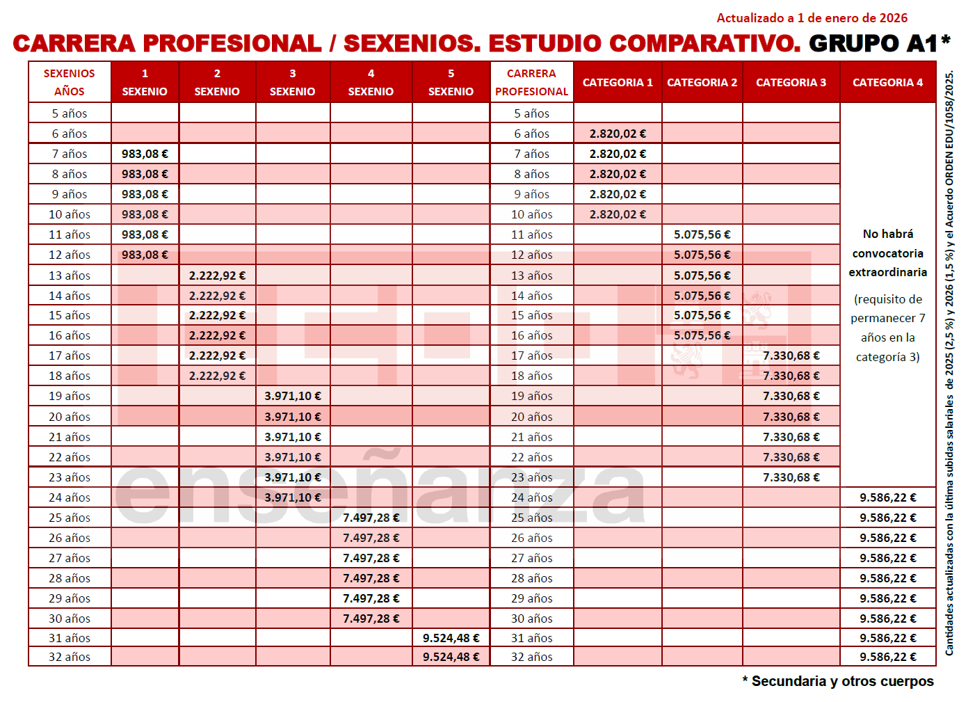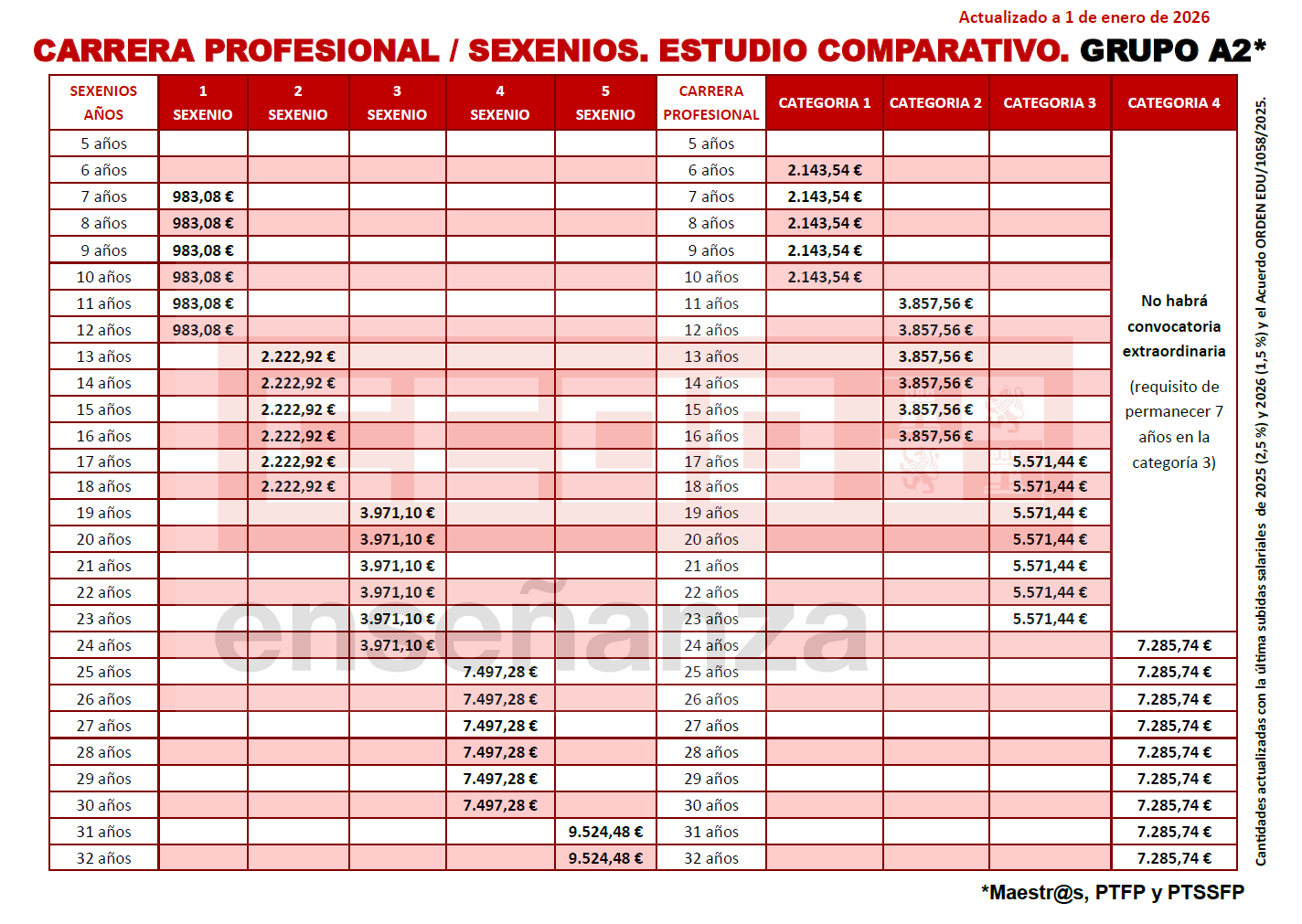 Actualizado con la última subida salarial 2025 (2,5%) y 2026 (1,5%) y el Acuerdo ORDEN EDU/1058/2025