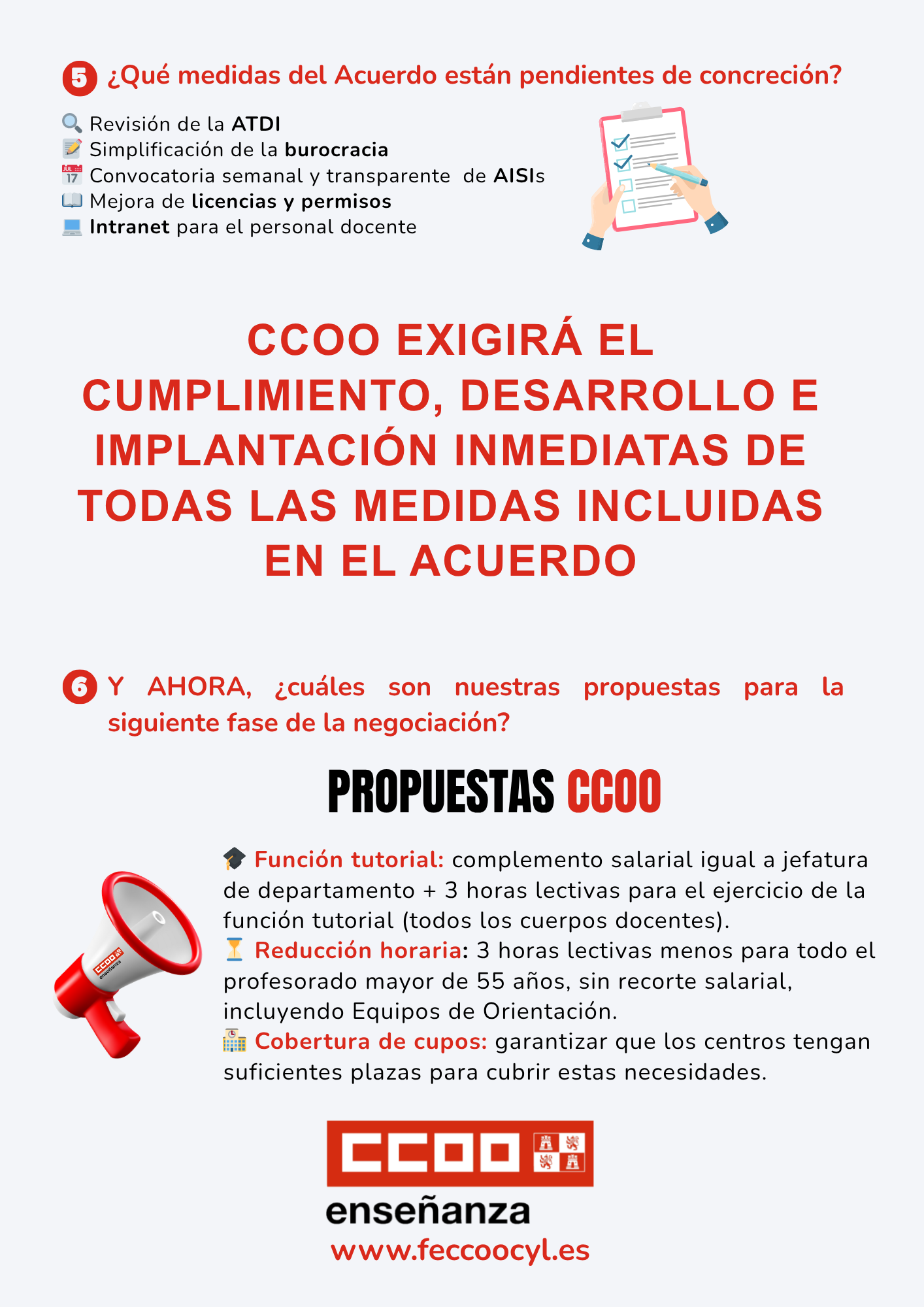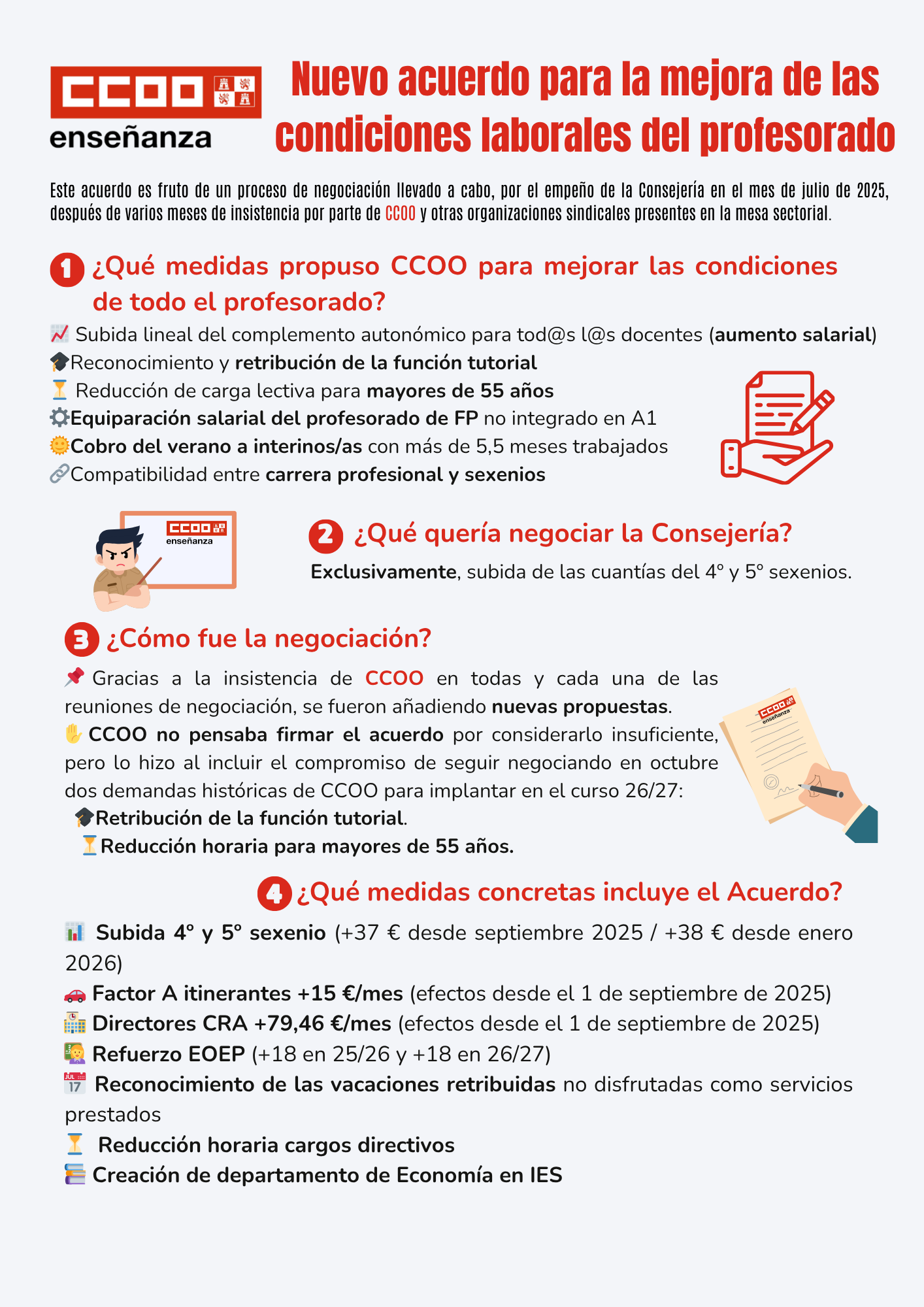 CCOO informa del proceso de negociación y de sus propuestas Información relacionada: Acuerdo de mejora de las condiciones laborales del personal docente de centros públicos no universitarios de CyL